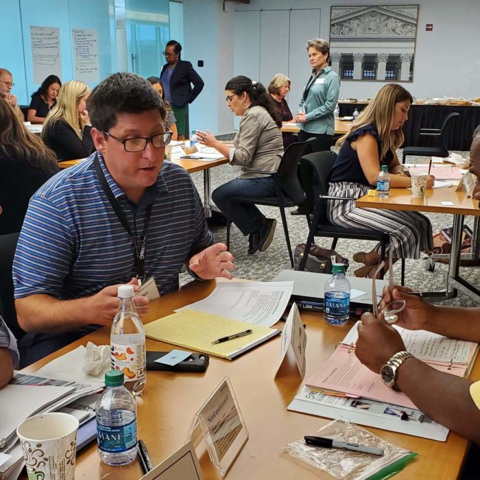 STREET LAW: Teachers break out into groups for discussions at the Street Law Summer Institute for Law Teachers. Street Law piloted its summer institute for law teachers in 2019. The two-day institute is designed to help high school law teachers improve their knowledge of law-related content and use effective strategies to foster student civic engagement.